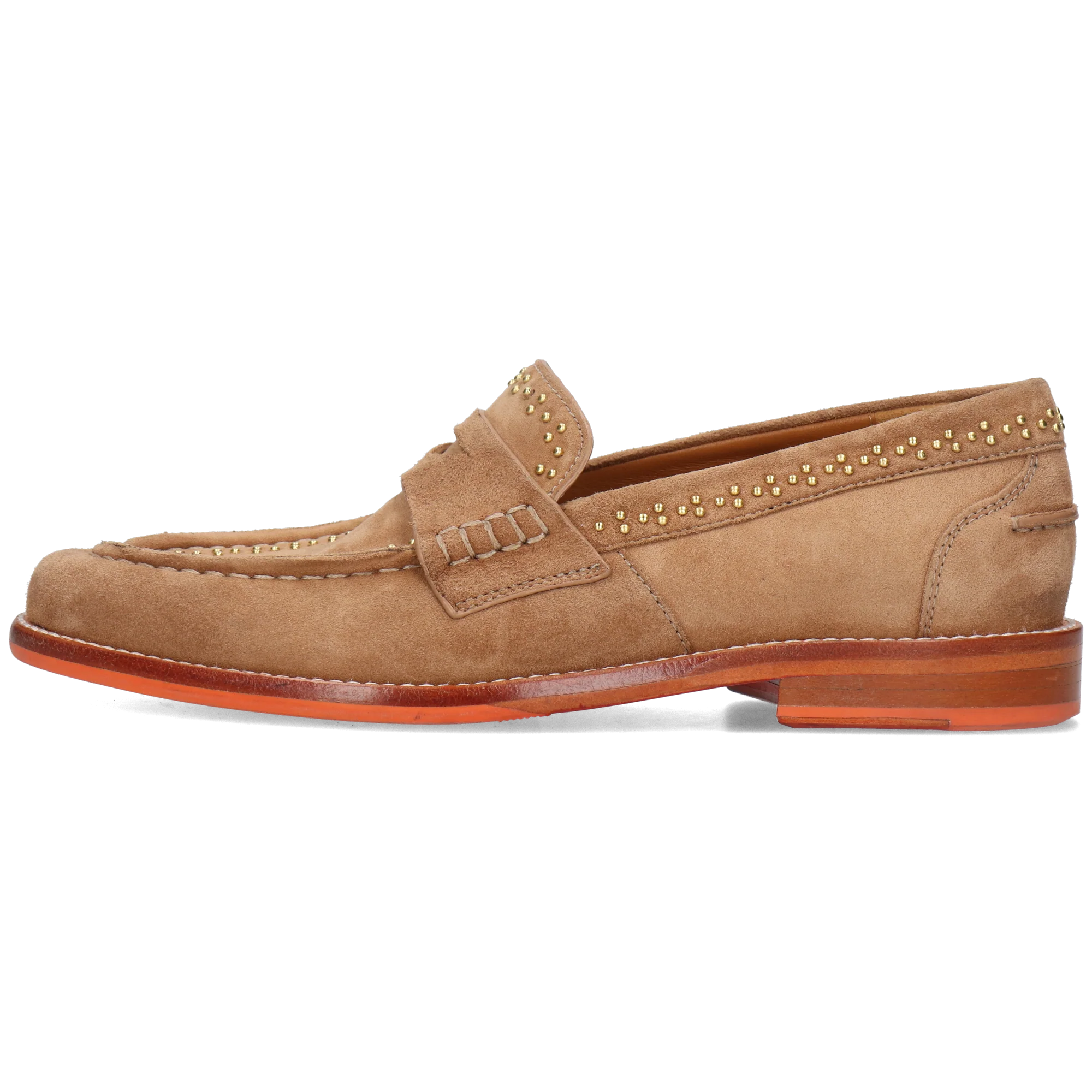 Melvin & Hamilton presents its spring/summer collection of women's loafers. Loafers come in all shapes and sizes, with straps, tassels or sleek details. Discover the features of our Gianna 10 leather model. These loafers, with their round toe in brown suede leather and highly original orange leather & rubber, are just the thing to liven up a classic outfit or play with colours and patterns! In spring, any touch of fantasy is welcome to welcome the fine weather. Don't hesitate to stand out from the crowd with this flat heels model, but always choose quality leather.