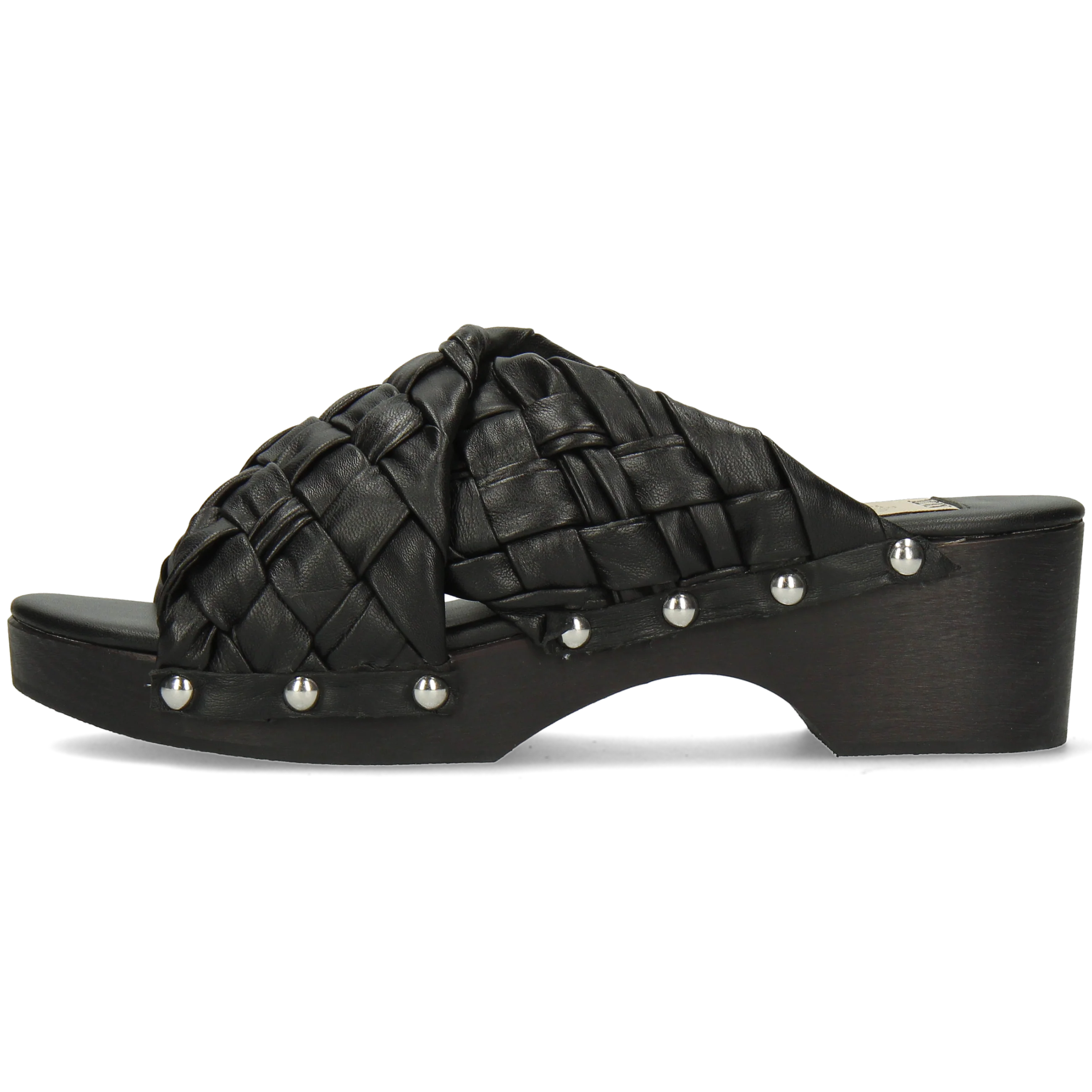 Melvin & Hamilton presents its spring-summer collection of clogs for women. Clog shoes with comfortable block heels will accompany you all season long. Discover our leather clogs Sina 2, its character and how to wear it. Our clogs are naturally made of high-quality leather and benefit from the brand's know-how. Available in different versions as feminine woven clogs or more grunge studded sandals, they are equipped with a platform sole made of wood and rubber, which gives them an elegant and chic look without compromising on comfort. Choose these black leather clogs and show off your legs!