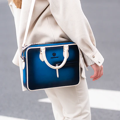 Looking for a new fashion handbag? Melvin & Hamilton's Vancouver handbag will be the perfect choice! With generous dimensions to store a small notebook and personal effects, this blue vegetable leather bag with white handles is the perfect bag to keep all your documents safe while been a real fashionista in the street. It's a perfect stylefull and retro bag. It can be carried as a cross body bag as well as a handbag.